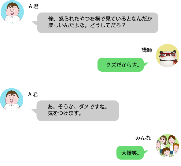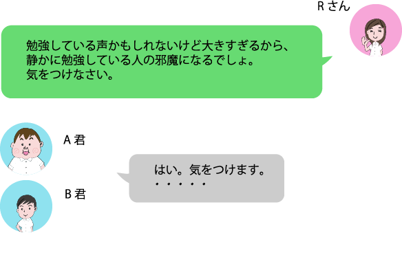 A君とB君はその後も元気よく話しながら勉強を続けていましたが、ちょっと声が大きいようです。