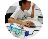 ロボットにイメージ通りの動きをさせるために、まず、どのような命令が必要か考え、その命令を効率良く順序立てて並べていくことで、論理的思考力が身につきます。